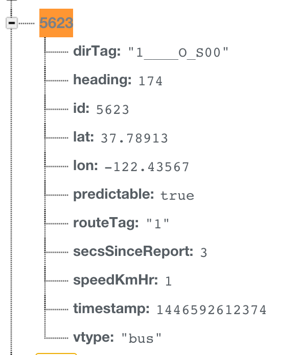 I tested it several times and one of them didn’t work. The distance was getting bigger. Seemed like a fluke, maybe… perhaps… no…. it wasn’t. I was able to find the vehicle coming closer to the user, but not necessary right direction. So now I need to figure out a way to decide the direction. I spent time pseudo coding a function to pull the two vehicles that are coming toward my user and then comparing the distance change of the each vehicle to my destination geolocation. Then Natalia, a fellow, asked me if there is a way to tell if its outbound or inbound like with NextBus. I showed her how Firebase has each vehicle set up. She helped me figure out that dirTag contains “O” or “I” which means I can ask my user to select which direction. I talked to her about how I want it to be easier for my user, but she reminded me that I should get it working (ask the direction) and then on my next phase do the magic for my user. She was a great support.